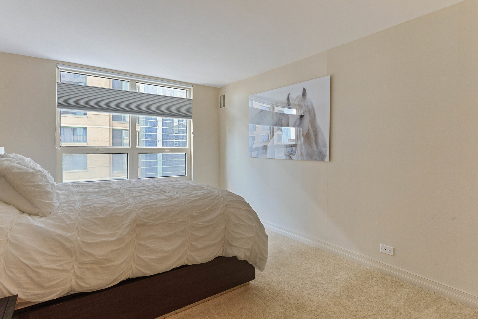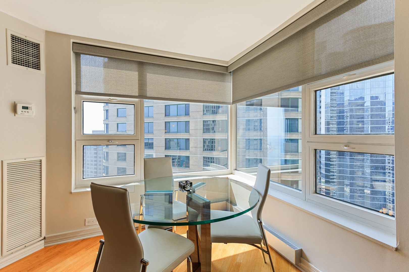 Looking for a total turnkey condo? This updated 34th floor, 1 bedroom / 1 bathroom condo is being sold totally furnished with the owner's lightly used high end designer pieces. Enjoy the hardwood floors flow seamlessly throughout the main living area and kitchen. The modern kitchen has been updated with 42" white cabinets, sleek stainless steel appliances, and gorgeous granite countertops. The bedroom features plush carpeting, Hunter Douglas top-down bottom-up blackout shades, and a convenient walk-in closet for all your storage needs. The bedroom furniture (including the Airloom brand mattress) will be included in the sale as well! The main living area is generously sized, providing ample space for a dining area where you can entertain. The furniture in this room is outfitted with real leather furniture made in Italy and Hunter Douglas window shades as well. The piece de resistance is the large south-facing bay window, allowing natural light to flood the room and providing unparalleled views of the lake and sunsets. This is great space for a workspace or dining area. This condo offers a rare double-sized storage locker cage, perfect for keeping your large luggage and other large possessions. The building is meticulously maintained with hotel style amenities like 24 hour door staff, heated garage, laundry room, rooftop sundecks with panoramic views, indoor pool with sauna and hot tub, and a fully equipped fitness center with skyline views. It's a rarity to find an updated 1-bedroom unit at $300K in the Near North Side, especially with this square footage and high-end amenities. You'll be just steps away from Michigan Avenue, the Loop, the lakefront path, the river walk, Navy Pier, and the Ohio Street Beach. This is an urban professional's dream, an ideal in-town residence, or a perfect haven for a nearby university student. Transportation options are abundant with nearby CTA bus stops and easy access points to Lake Shore Drive, ensuring seamless connectivity. The very reasonable assessment even includes your heat, air conditioning, water, cable TV, and internet! Schedule a viewing today and make this exceptional residence your urban sanctuary!